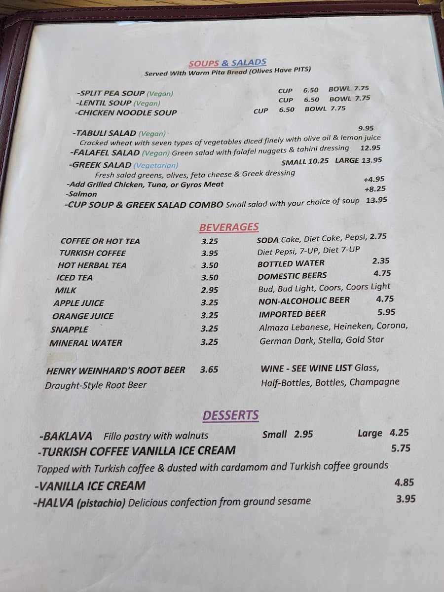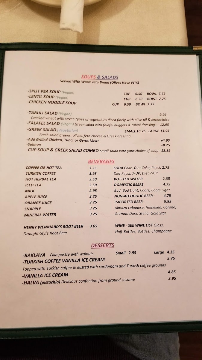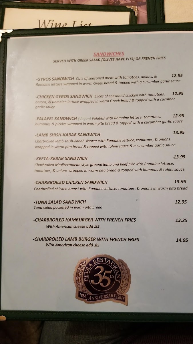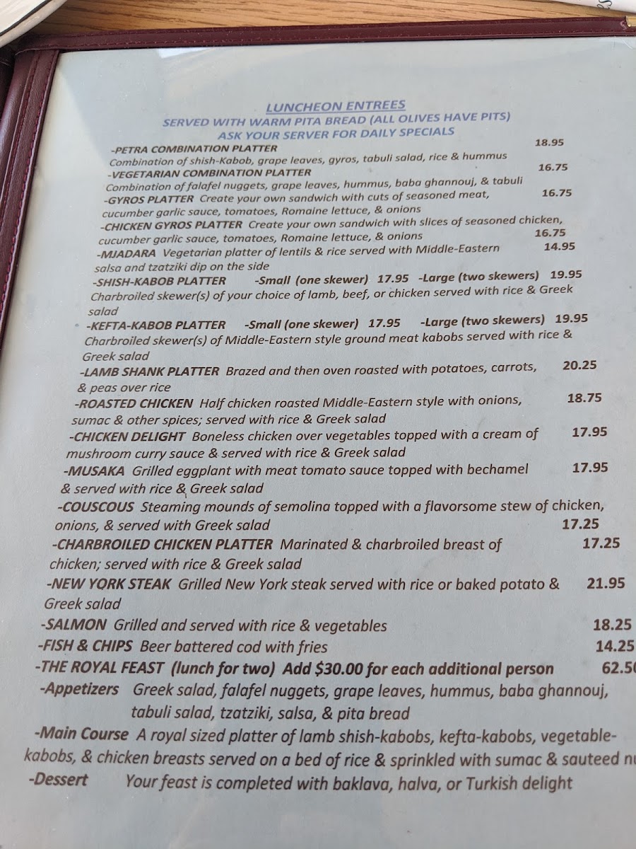 Petra Restaurant Menu